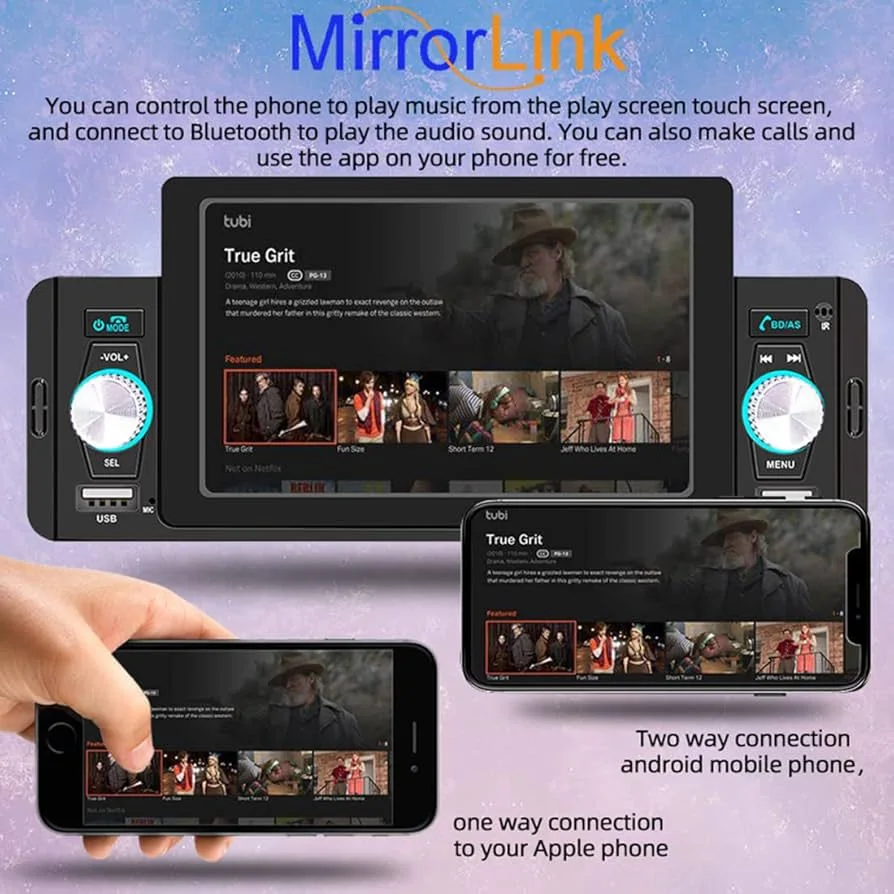 يدعم مشغل الراديو هواتف iPhone وAndroid لاستخدام خاصية وصلة المرآة. استخدم كابل بيانات USB الخاص بالهاتف المحمول للاتصال بالراديو، ثم يُمكن عرض شاشة الهاتف على شاشة الراديو